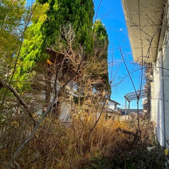 雨樋清掃をご依頼いただいたお客様のお隣のお宅より、草刈り及び樹木の伐採作業をしてほしいとお声がけいただきました。