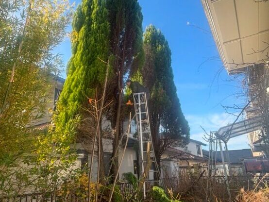 伸びすぎた庭木および高木の伐採