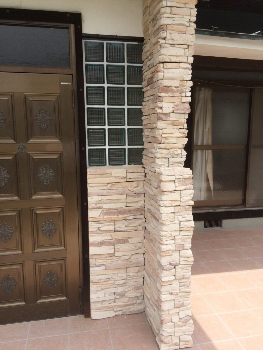 自然石を使った石貼り施工を行いました。