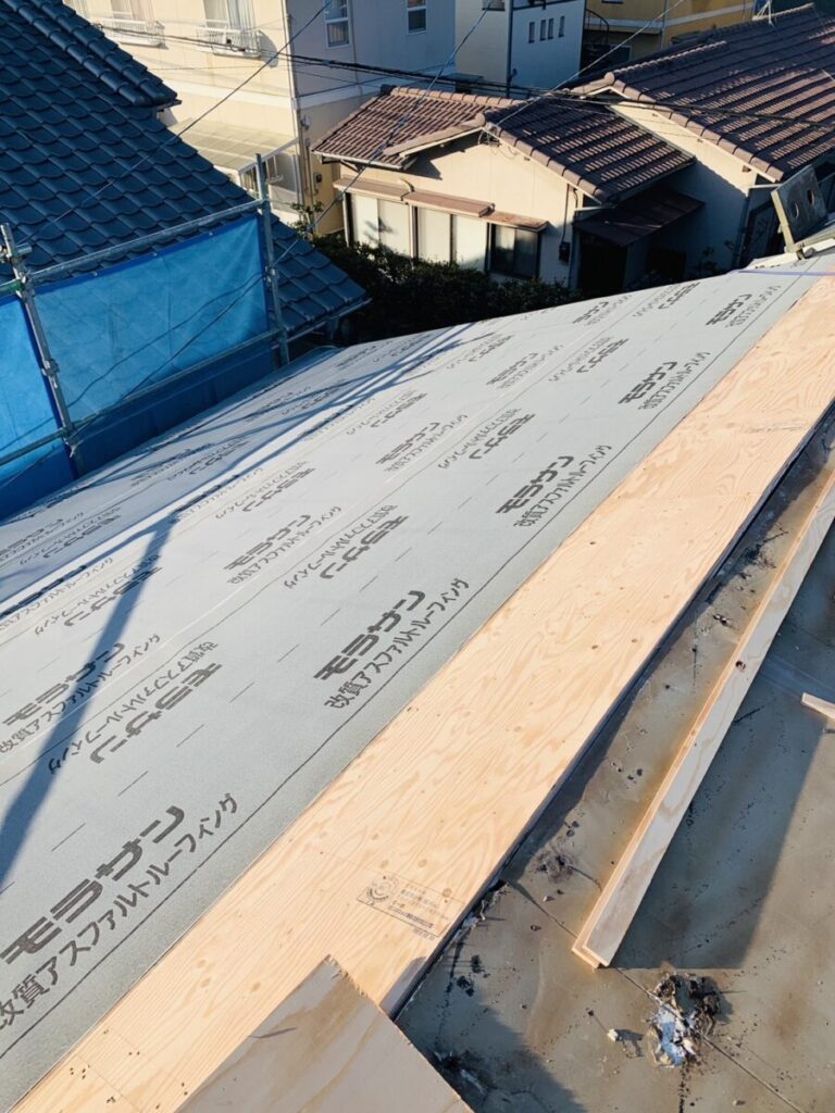 次に、防水シート(ルーフィング)を施工します。
