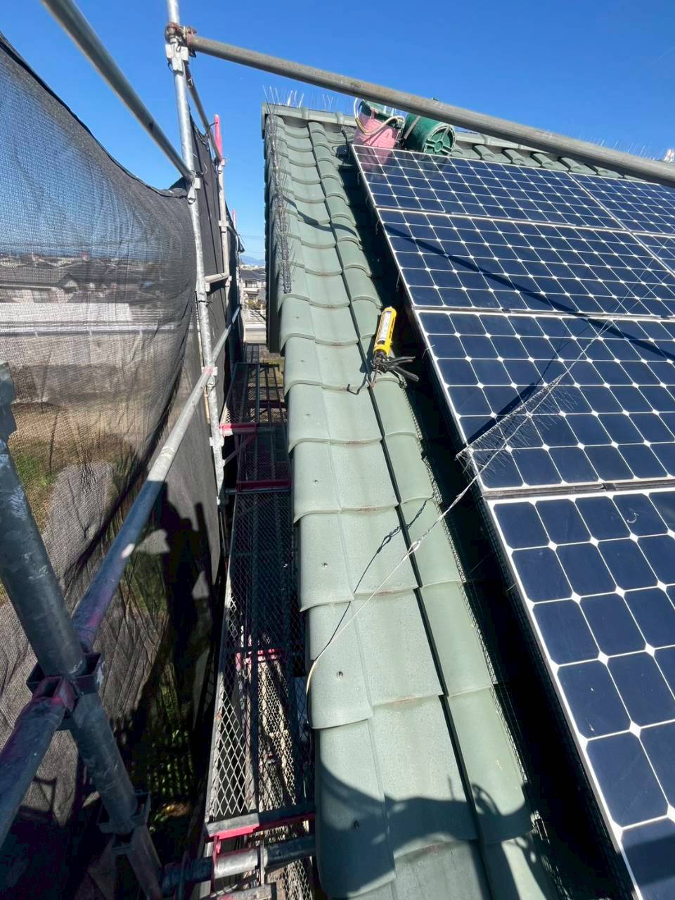 鳥がパネルの下に潜り込まないよう、専用の防鳥ネットをしっかり固定。
