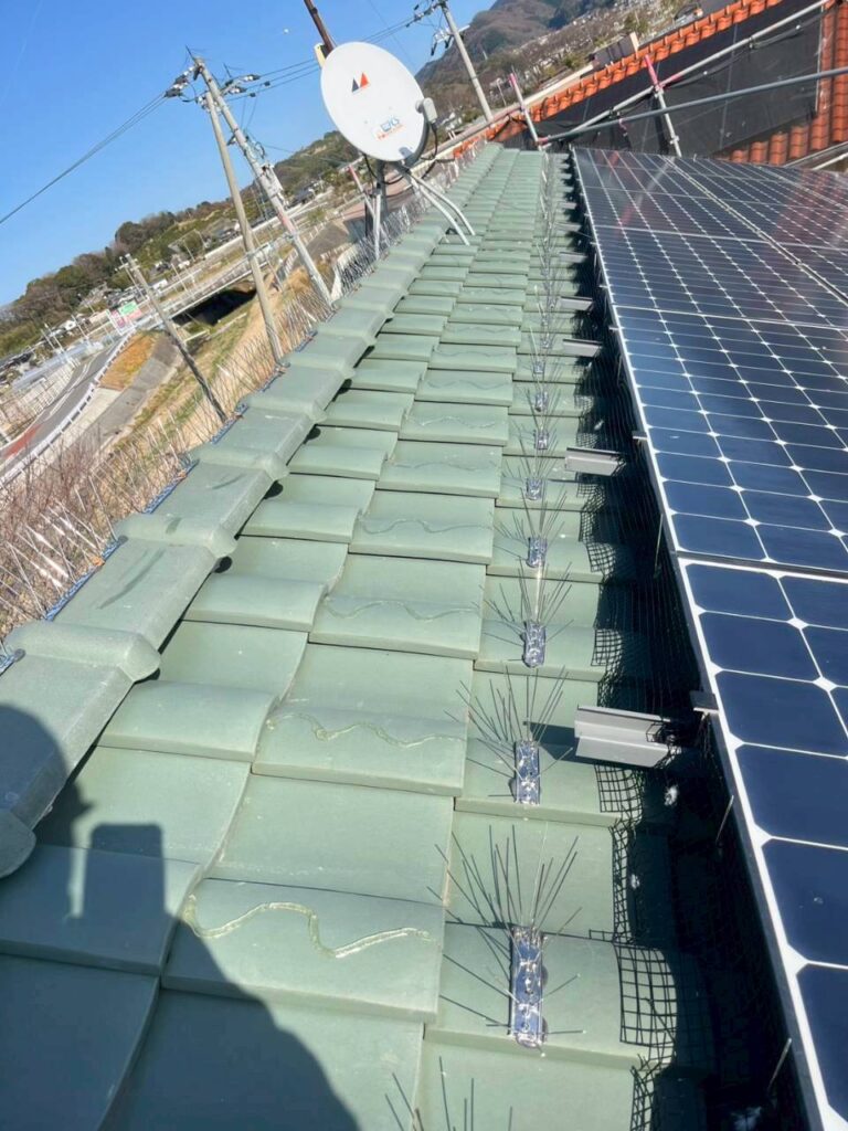 「屋根やソーラーパネル周辺に鳥が止まり、フンの被害に悩んでいる」とご相談をいただきました。