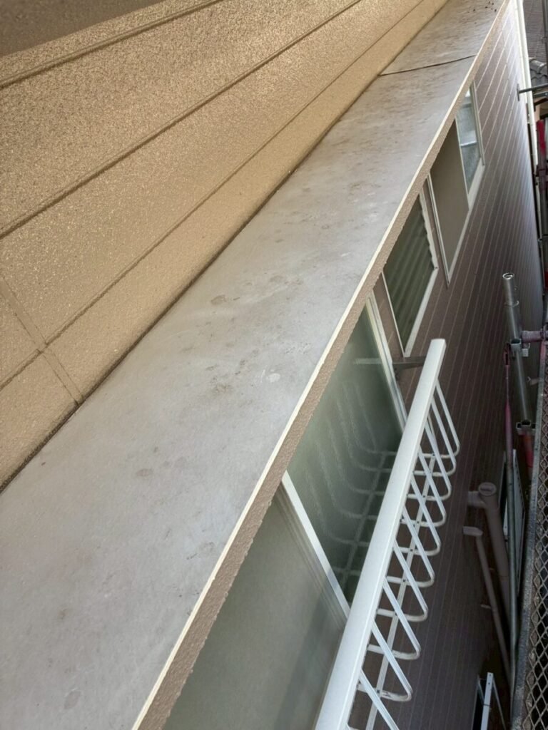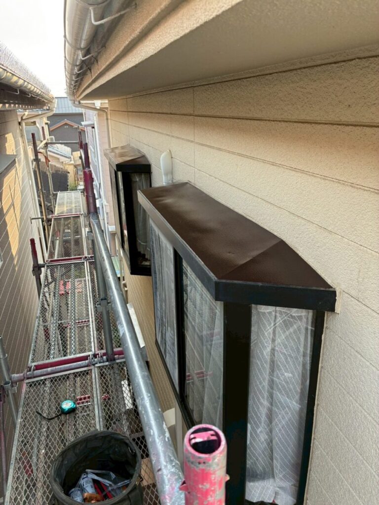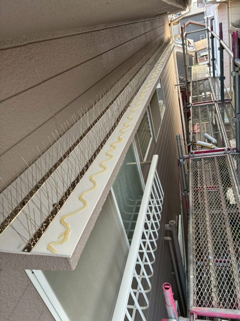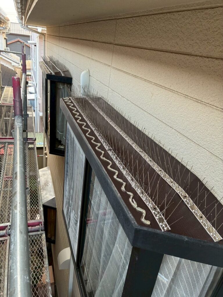 塗装完了後、鳩がとまりやすい庇の上に