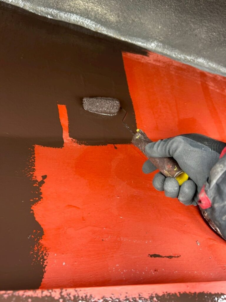 錆止め乾燥後、上塗りを行い、