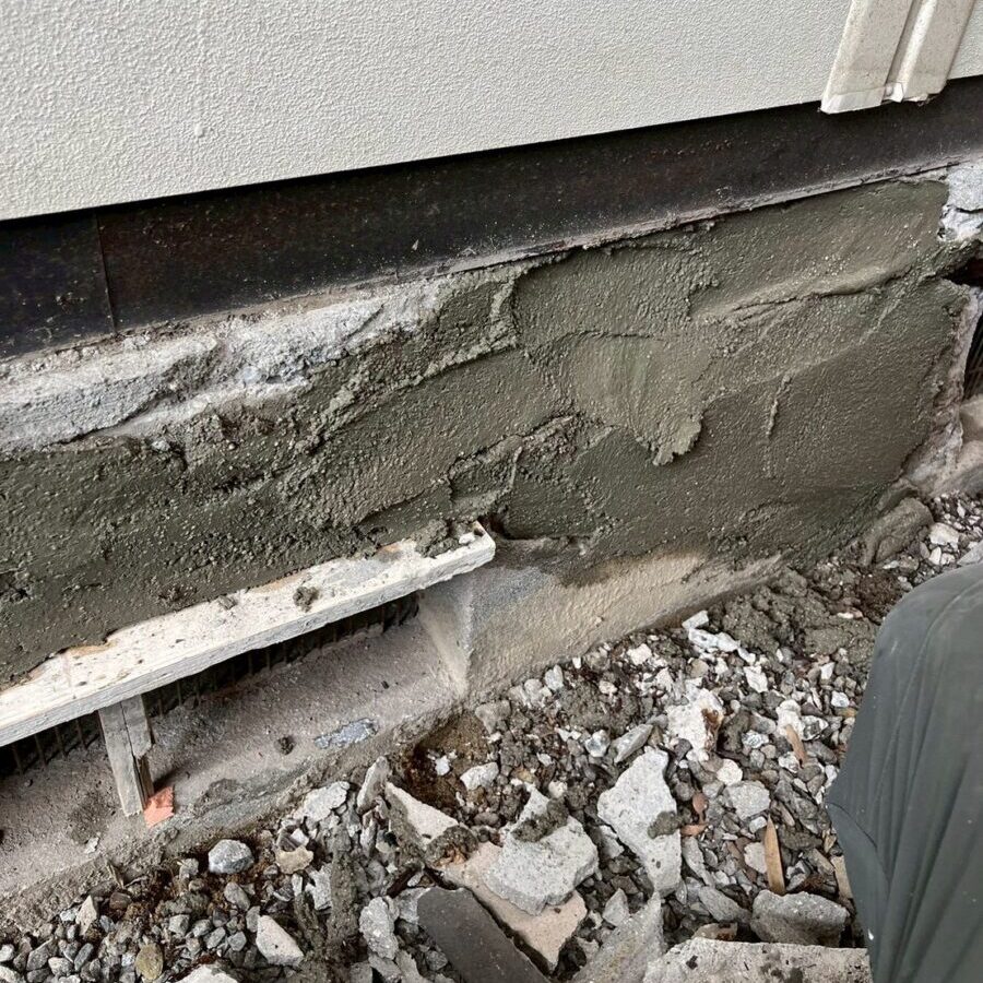 松山市新浜町にて、住宅基礎部分のひび割れ・欠損を補修する工事を行いました。