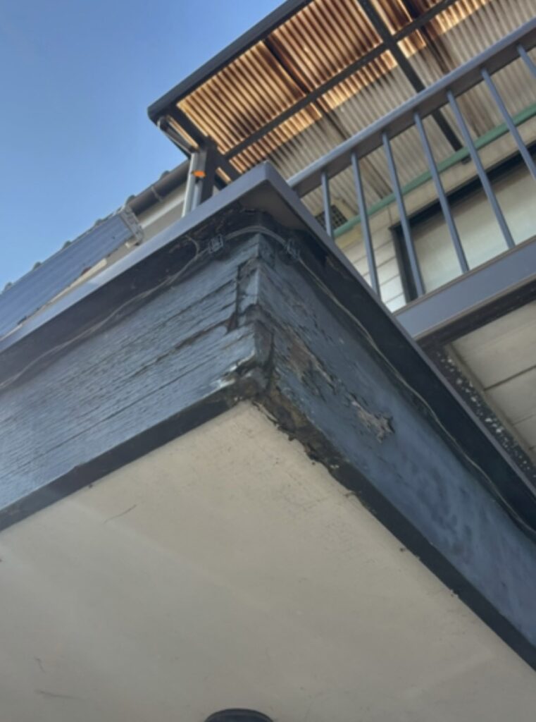 上の板金をコーキング補修、塗装をし横面も補修しました。