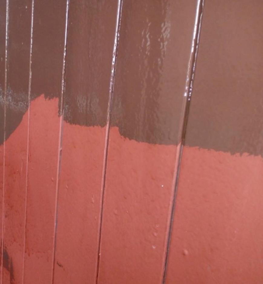 まずは下塗り(オレンジ色の物)を行ってから、中塗り、上塗り(茶色の物)を行っていきます。
