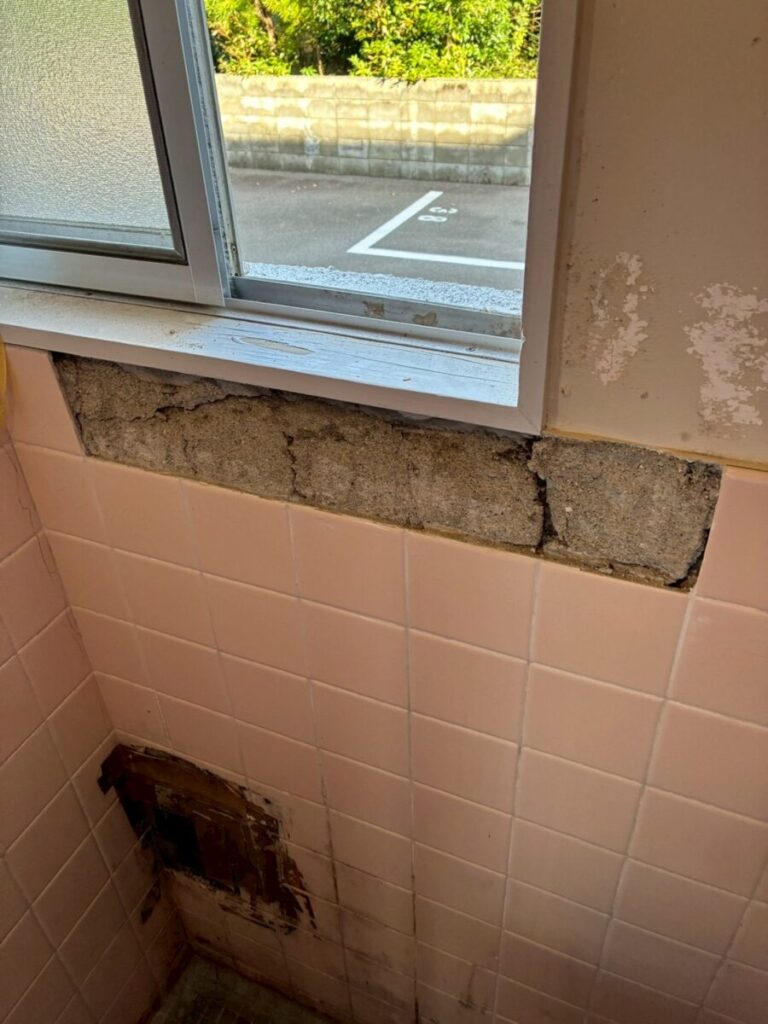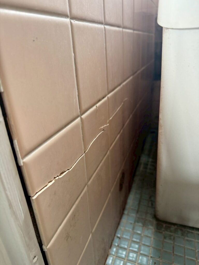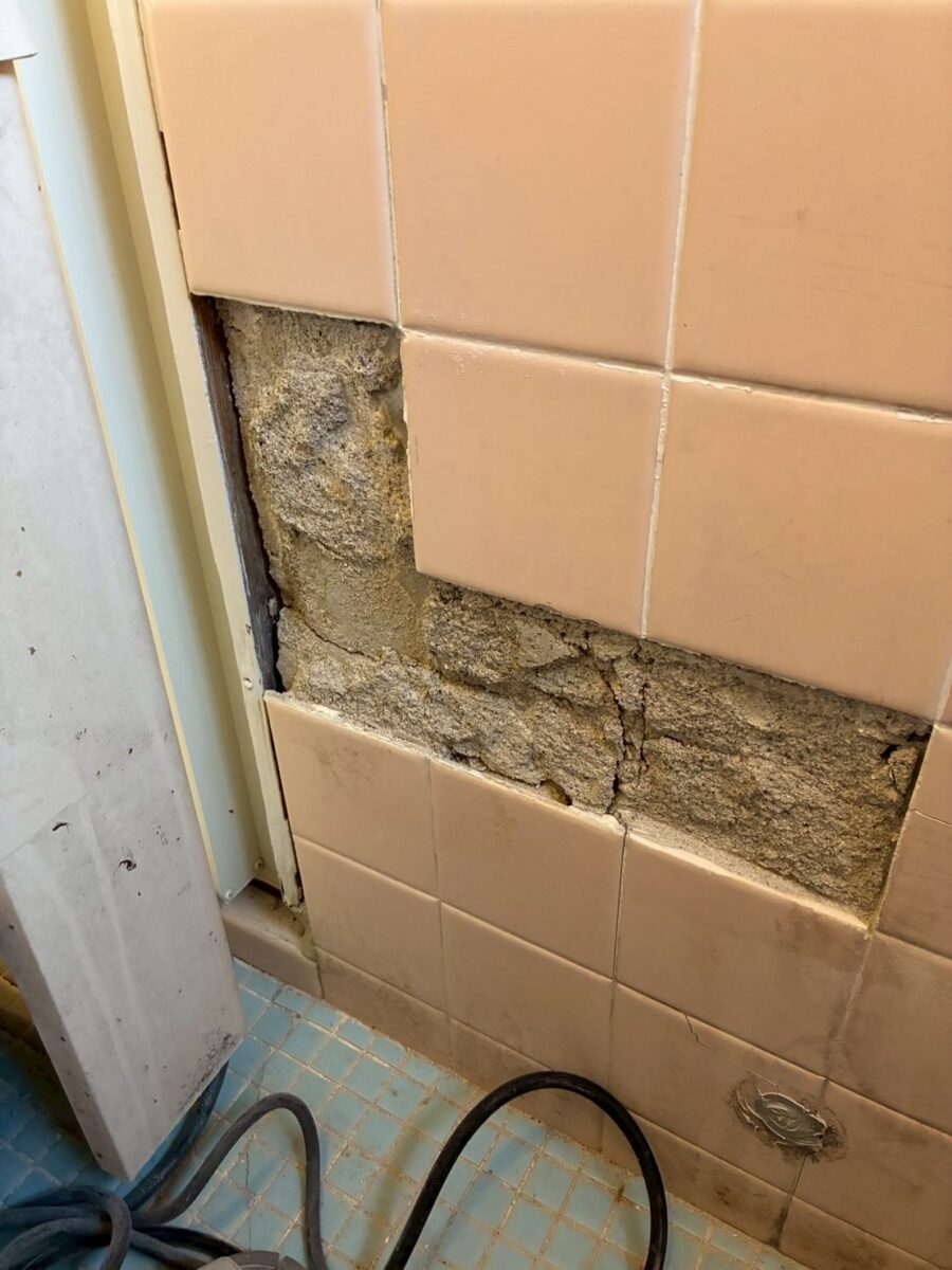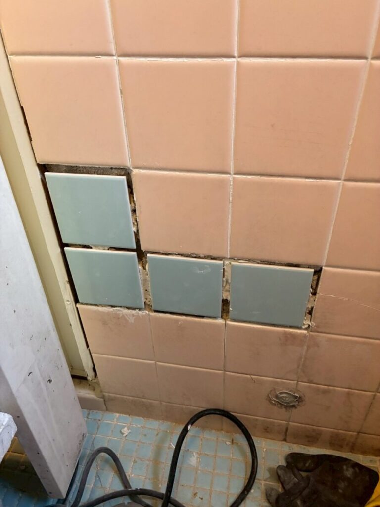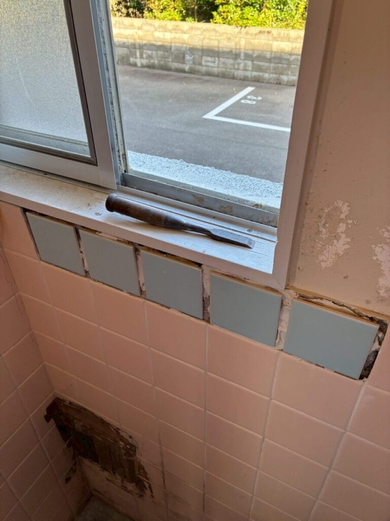 まずは、ひび割れや、割れているタイルの撤去を行います。