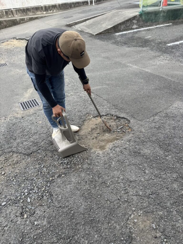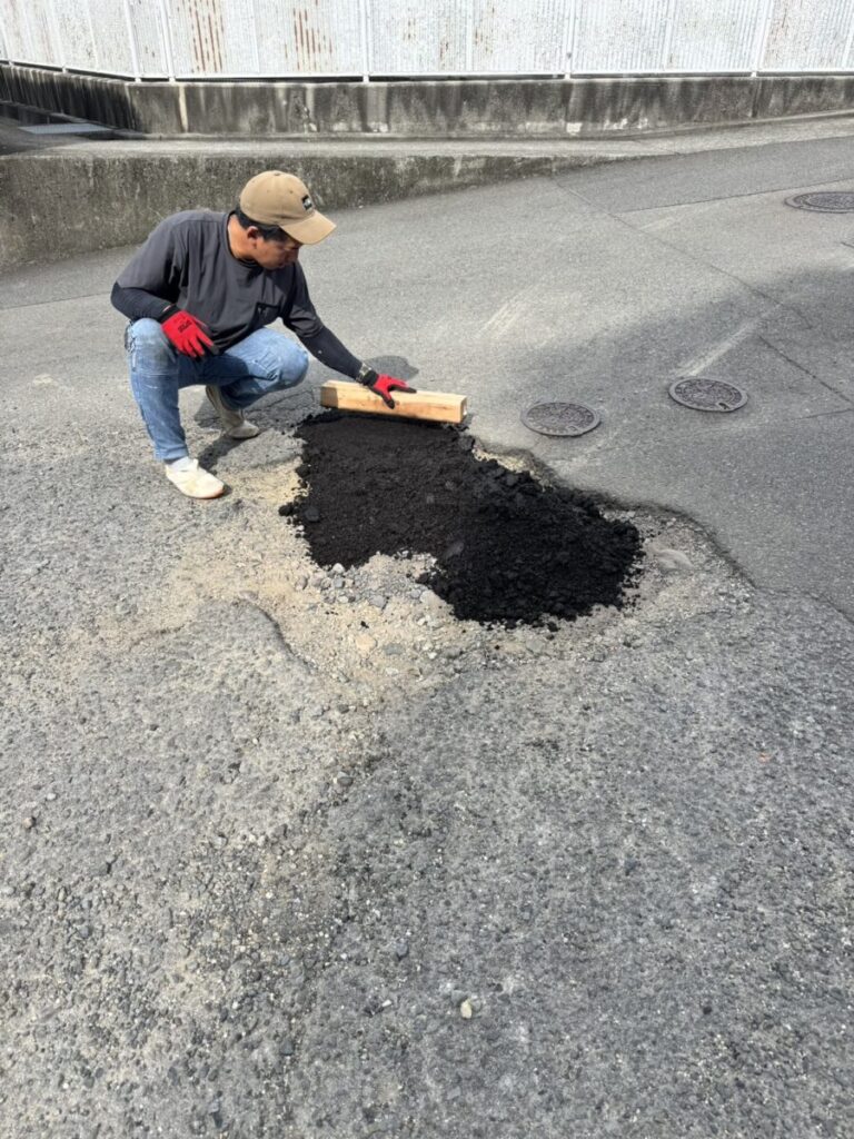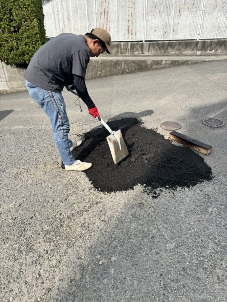 愛媛県松山市にて、アスファルトの舗装、穴埋め工事を行いました!