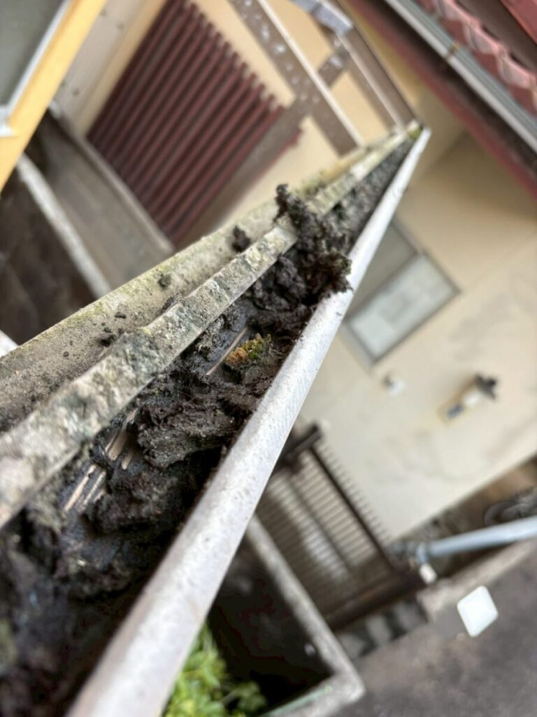 テラスに付いている雨樋の掃除もします。