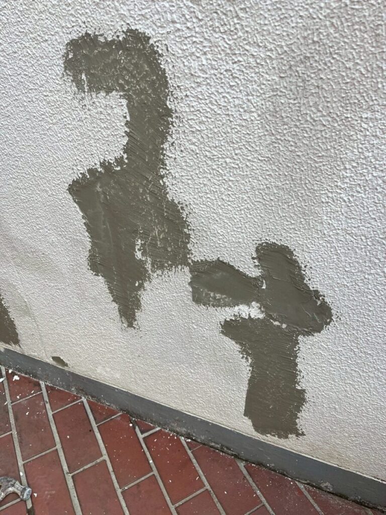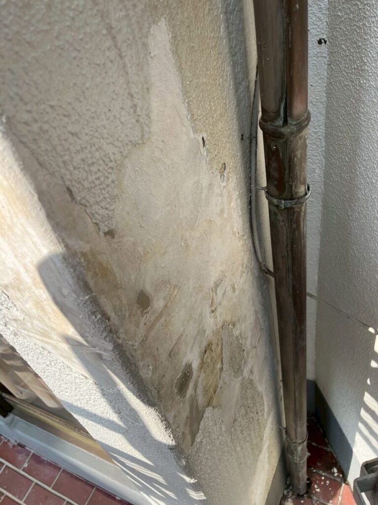 膨らんでいる部分はしっかりと剥がし、平にしてからモルタルで補修していきます。