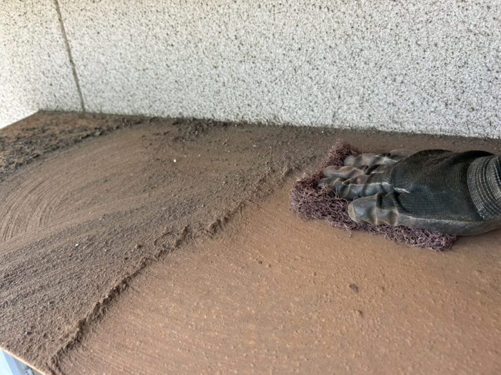 写真のように、専用のケレン材を使ってしっかり磨き、滑らかな下地をつくります。
