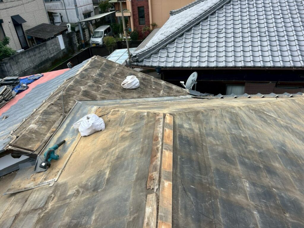 屋根の状態を点検したところ、セメント瓦の経年劣化と下地の傷みが確認されました。