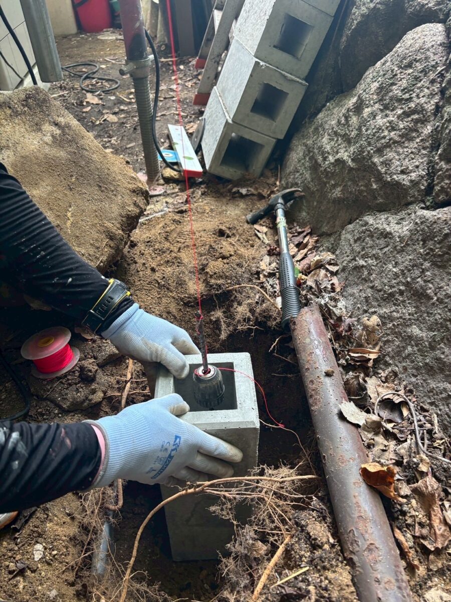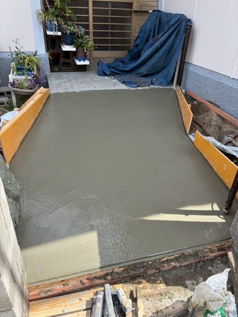 こんにちは!乗松です。本日は愛媛県松山市堀江町にて、外壁塗装、屋根塗装、雨樋塗装、板金塗装、雨戸塗装、基礎工事、木テラス塗装、玄関前の塀の解体・塗装を行いました! まずは足場の組み立てからです。足場の組み立てが完了したらお家全体を屋根から高圧洗浄していきます! 外壁