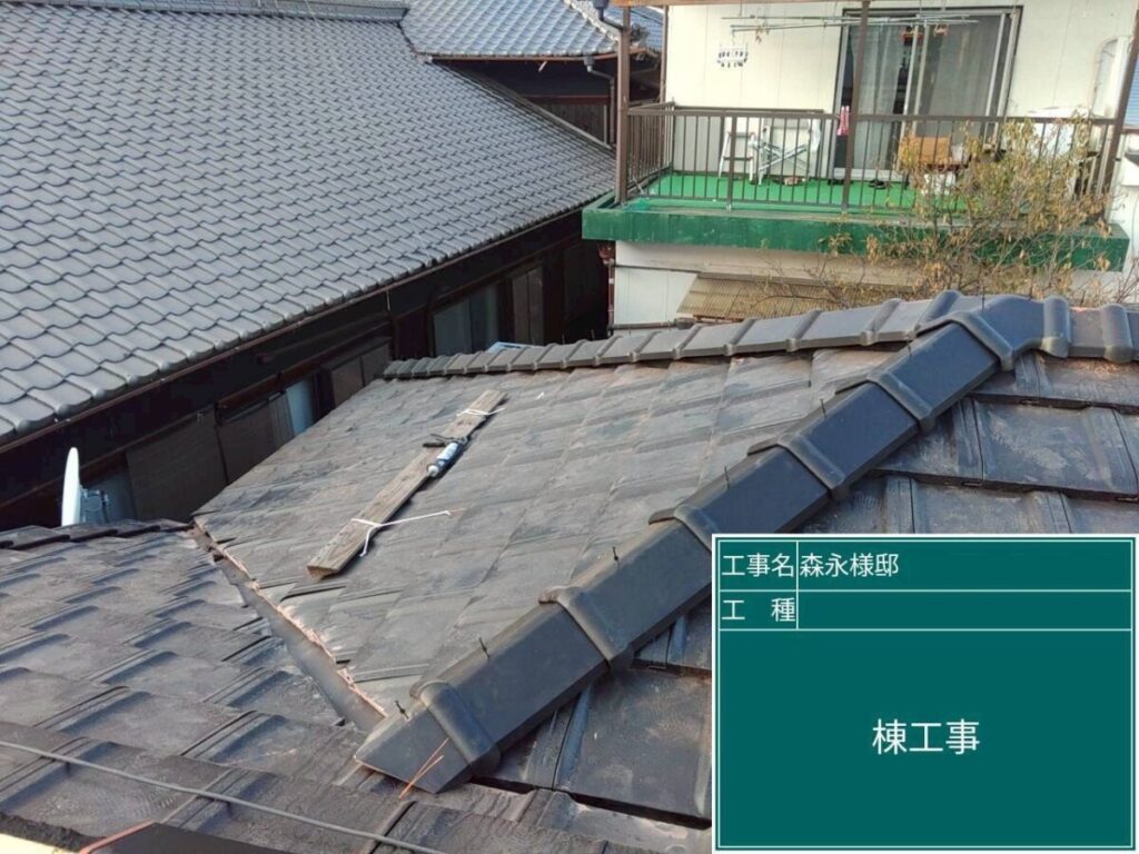 防水処理・耐風処理を施し、瓦を固定して完了。