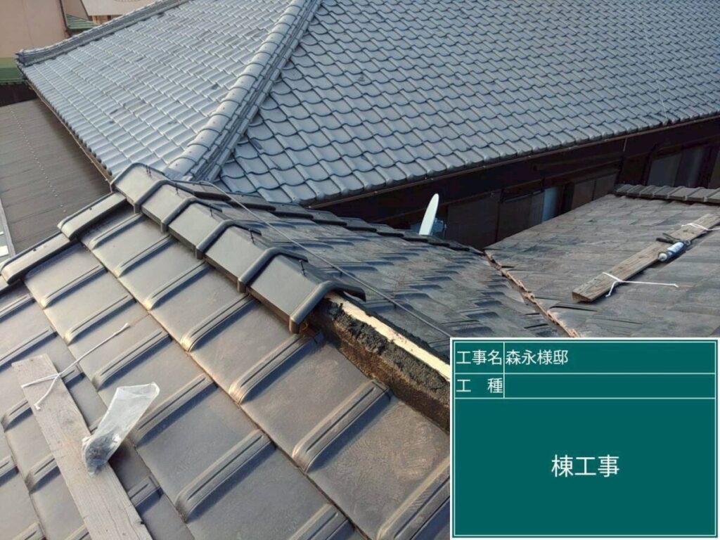 棟は、雨仕舞いの要となるため、特に丁寧に作業を行いました。