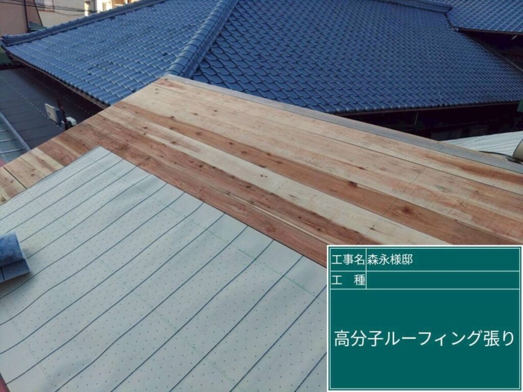 雨水の浸入を防ぐ重要な工程で、屋根材の下で建物を守る非常に大切な役割を果たします。