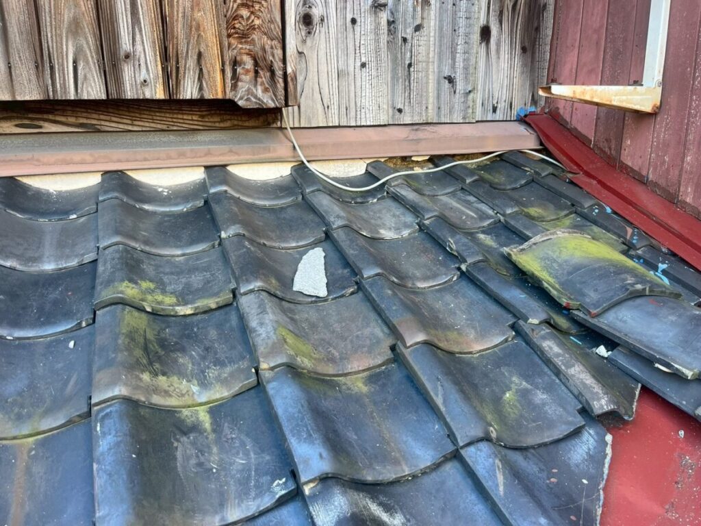 ・屋根瓦に割れ・ハジキ(表面剥離)が複数箇所で発生