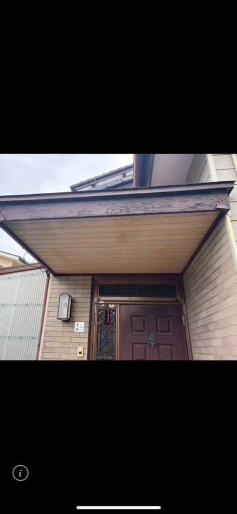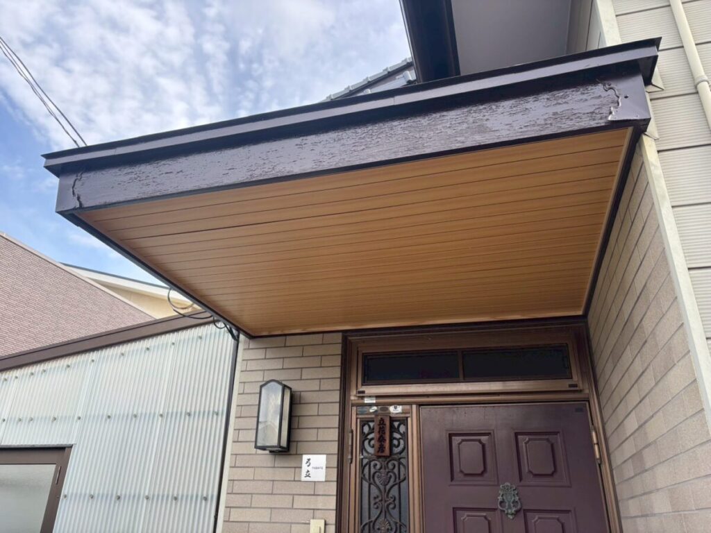 今回は、Y様邸にて屋根塗装工事に伴う玄関上の、化粧合板張り替え工事を行いました。